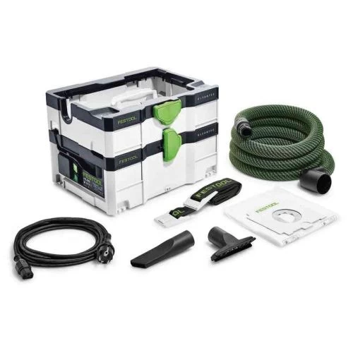 Cet aspirateur CLEANTEC CTL SYS de la marque Festool est équipé d’un moteur silencieux grâce à son faible niveau de pression acoustique et un volume cuve / sac de 4,5 / 3,5 l. Il est dans la lignée des machines Festool, fonctionnelles, puissantes, maniables, légères et compactes grâce au format Systainer pour une mobilité maximale. Cet aspirateur est muni d’un nouveau tuyau d’aspiration lisse, souple, avec un revêtement pour un glissement parfait sur les surfaces. Il dispose d’un logement pour tuyaux, câbles et buses pour plus de confort d’utilisation ; d’une poignée de transport avec sangle très confortable. Cette machine est compatible avec le système de SYSTAINER avec le T-LOC pour permettre une organisation optimale du poste de travail.