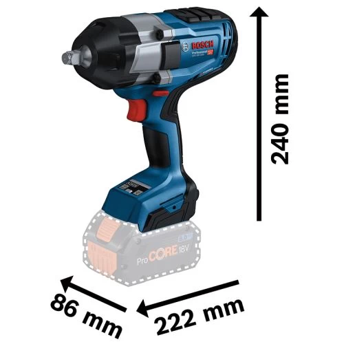 La boulonneuse GDS 18V-1000 Professional de Bosch est dotée d’un moteur Biturbo sans charbon haute performance permettant d’utiliser la puissance des batteries. La technologie de protection électronique du moteur (EMP) protège ce dernier contre les surcharges. Cet outil permet de travailler sur une gamme d’application dont les principales sont les vissages (M10 – M24) pour la réalisation de structures en acier, l’assemblage de métaux, la maintenance de poids lourds et pour les constructions en bois. De plus, son système de présélection de vitesse et de couple lui permet de s’adapter selon le type de matériau pour un résultat parfait. Un interface utilisateur affiche en temps réel l’état et les réglages de l’outil. La boulonneuse GDS 18V-1000 Professional bénéficie également d’une protection électronique des cellules (ECP), d’un éclairage LED, d’un porte-outil 1/2 » et d’un clip de ceinture. En outre, elle est compatible avec toutes les batteries et tous les chargeurs 18 V de Bosch Professional (Professional 18 V System).