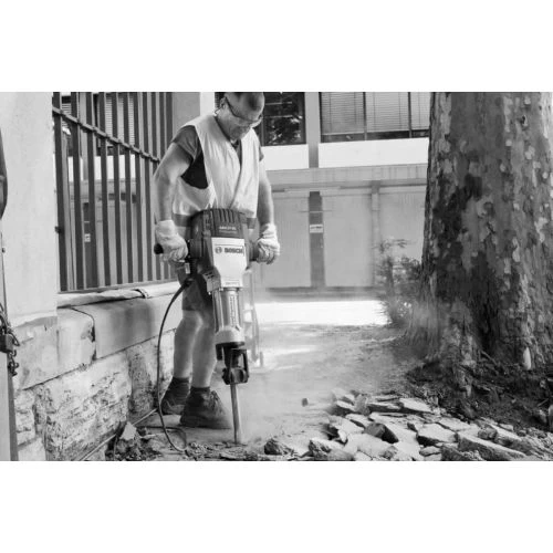 Le brise-béton Bosch GSH 27 VC Professional 2000 W est un outil puissant avec un moteur délivrant une force de frappe de 62 J, permettant de disposer de la capacité d’enlèvement et de démolition la plus élevée de toute la gamme Bosch. Ses composants métalliques extrêmement robustes garantissent une longévité élevée. L’outil offre également un confort d’utilisation grâce au système Vibration Control réduisant la fatigue pendant les longs travaux. Il est muni d’une surface antidérapante prévenant tout accident lié au glissement. Enfin, ce brise-béton Bosch GSH 27 VC Professional 2000 W est compatible avec le dispositif d’aspiration de poussière GDE hex Professional pour un travail propre.