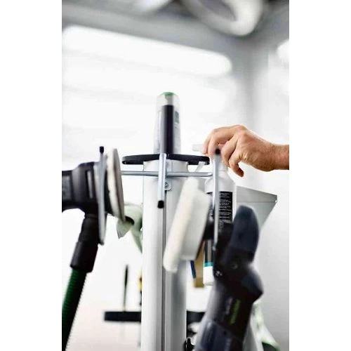 Le crochet à outils de la marque Festool est un accessoire qui s’associe avec le Workcenter WCR 1000 et pouvoir suspendre deux outils électriques ou pneumatiques. Il favorise un rangement harmonieux et se trouve à portée de main. Il convient parfaitement pour ranger le tuyau d’aspiration. Ainsi, il garantit aussi la durée de vie d’une ponceuse car cette dernière ne doit pas être posée sur l’abrasif. Ceci est un modèle solide et durable.