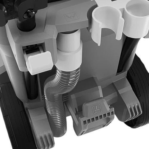 Cet aspirateur est doté d’une cuve de 50 l et d’un nouveau système de décolmatage automatique du filtre qui s’auto-nettoie automatiquement pour un fonctionnement sans interruption. Quant au positionnement du filtre plissé plat au niveau de la tête d’aspiration, il permet une exploitation totale du volume de la cuve.