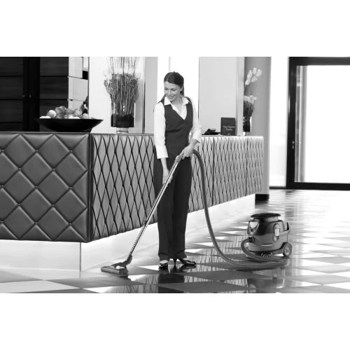 Un aspirateur poussière T 15/1 800 W de Kärcher dispose de 6 niveaux de filtration et bénéficie d’une protection optimale. Il se distingue par son faible niveau sonore et est donc idéal pour travailler dans les zones où le silence est de rigueur. Il est équipé également d’un large bouton marche-arrêt au pied et des protections antichocs. De plus, ses deux grandes roues fixes à l’arrière et ses deux roulettes directrices à l’avant assurent une grande maniabilité. Cet aspirateur est doté d’espaces de rangement intégrés pour les accessoires, le tube d’aspiration, les suceurs et le câble électrique, et du réglage de la puissance d’aspiration à la poignée.