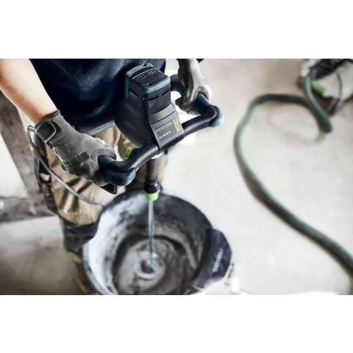 Le mélangeur MX 1200 HS2 de la marque Festool est un outil efficace dans des conditionnements de travail propre et sain grâce à l’aspirateur MX posé sur le bord de seau, ceci peut aspirer toutes les poussières lors des versements des matières en poudre. Il est doté d’une tige qui peut être réglée selon la hauteur voulue pour une activité ergonomique. Et aussi, la position de la poignée est très confortable en prise en main grâce à sa matière en caoutchouc. Il dispose aussi d’un moteur robuste qui peut résister à des charges plus lourdes et favorise un mélange constant. Cette machine se compose d’un accélérateur et régulateur de vitesse de rotation pour paramétrer le rythme de la force.