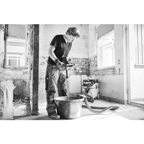 Le mélangeur MX 1000 RE EF HS2 1020 W de la marque Festool est l’outil idéal pour le mélange de ragréages, de colles pour carrelage, de mortiers, de crépis et de grandes quantités de matériaux fluides. L’utilisateur peut mélanger tout type de matériau sans aucune poussière grâce à ce mélangeur MX. Le dispositif de réglage flexible en hauteur ErgoFix offre un travail de façon ergonomique tout en préservant le dos des utilisateurs. Doté d’une puissance d’entraînement maximale et d’une grande longévité, ce mélangeur possède également un moteur puissant combiné à un réducteur robuste. Enfin, les coins anti-dérapants en caoutchouc permettent de le poser de manière sûre contre le mur.