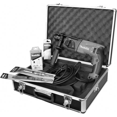 Le perforateur burineur SDS-Plus HR2470TX1 780 W de la marque Makita est une machine puissante avec un mécanisme de frappe et une étanchéité renforcés. Il dispose d’un mandrin interchangeable et d’un moteur résistant grâce à une protection en résine de l’induit et au ventilateur surdimensionné. Ce perforateur-burineur est également équipé d’un sélecteur de fonction protégé et d’un limiteur de couple afin de protéger le moteur et l’utilisateur en cas de blocage. Par ailleurs et pour plus de confort, il est doté d’une poignée latérale caoutchoutée orientable sur 360° avec butée de profondeur.